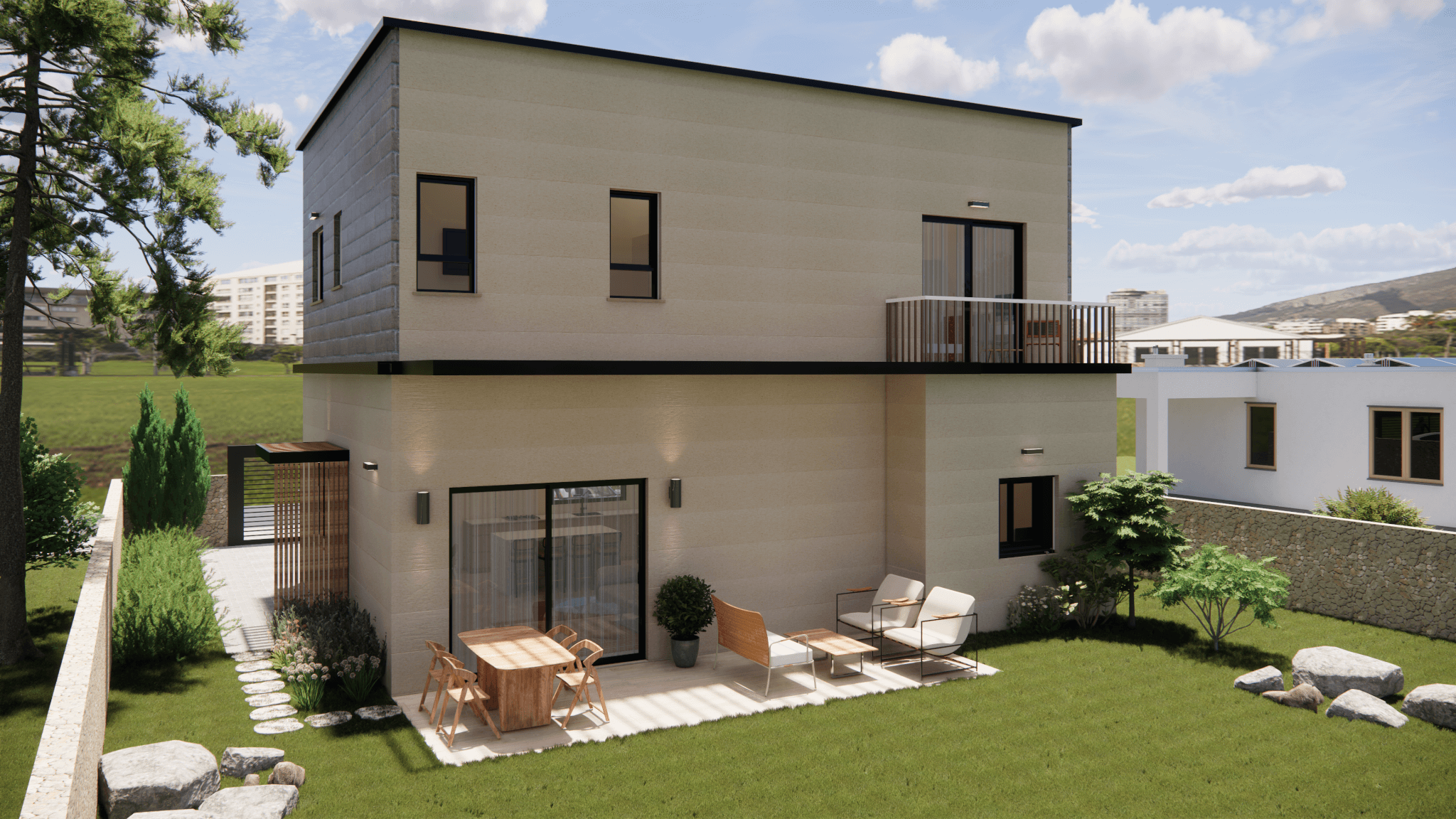 בית מודולארי מרווח הכולל חמישה חדרים, חלל מרכזי פתוח וסוויטת הורים פרטית. המרפסות הרחבות והחצר הגדולה יוצרות מרחב נעים לחיים משפחתיים. הדגם מתוכנן לנוחות מקסימלית ולחוויית מגורים איכותית, תוך שימוש בחומרים ובסטנדרטים הגבוהים של מודולארט.